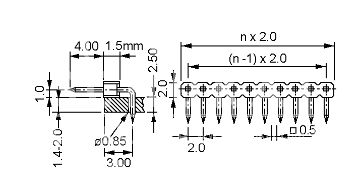 1x40 Tek Sıra Erkek Pin Header 90° 2mm Au (332-1-040-0-F-XS0) MSL140GW)